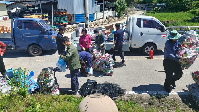 회원들은 바쁜 농번기에도 불구하고 전 마을과 들녘을 다니며, 곳곳에 흩어져 있는 농약 빈 병과 폐비닐봉지를 수거했다.