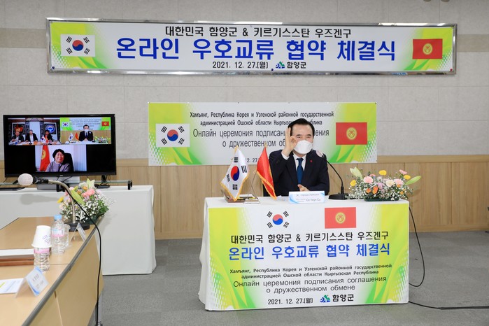 함양군에 따르면 지난 27일 오후 군청 소회의실에서 중앙아시아에 위치한 키르기스스탄 오쉬주 우즈겐구와 우호교류협약 및 외국인 계절근로자 파견을 위한 업무 협약을 체결하였다.