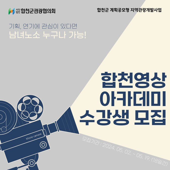 이번 아카데미를 주관하는 (사)합천군관광협의회 이규학 회장은 “이번 영상 아카데미를 통해 지역민의 역량을 강화하여 관광일자리를 창출하고, 더 나아가 합천영상테마파크가 영화, 드라마 촬영에 최적지로 자리매김 할 수 있기를 기대한다.” 라고 말했다.