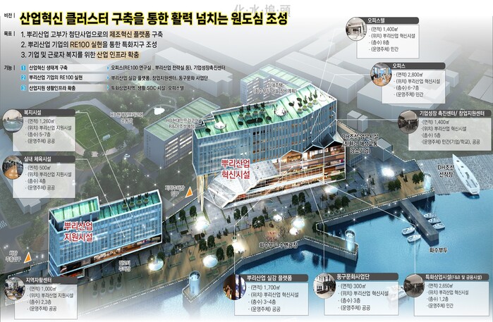 도시재생 혁신지구 주요 도입시설로는 기업성장촉진센터와 창업지원센터, 제조 산업에 대한 인식 개선과 산업문화관광 촉진을 위한 디지털 산업체험관과 동구문화사업단 등이 있다. 인근 근로자들을 위해 실내 체육시설과 같은 다양한 산업형 사회간접자본(SOC)시설도 조성한다.