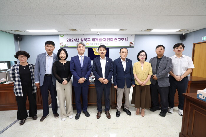 ‘성북구 재개발·재건축 연구모임’은 이관우(대표의원)·임현주(간사)·임태근·권영애·고영옥 의원으로 구성돼, 구의 노후·불량건축물이 밀집된 지역과 각종 정비구역 현황을 파악하고 지자체의 역할을 모색하기 위한 연구모임이다.