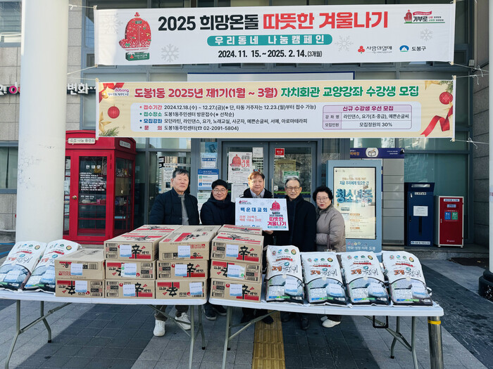 이광재 도봉1동장은 "백운대교회의 따뜻한 마음 덕분에 도움이 필요한 가구가 이번 겨울 따뜻하게 보낼 수 있을 것 같다. 후원 물품은 신속하게 전달하겠다.“라고 말했다. 후원물품은 지역 내 동절기 복지위기가구 20가구에 전해질 예정이다.