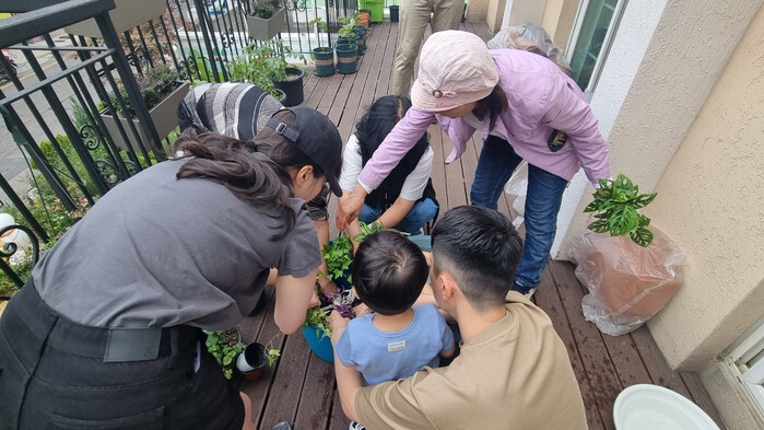 | ▲ 구로정원지원센터에서 열린 ‘가족이 있는 정원’ 프로그램에 참여한 가족들이 함께 식물을 심으며 도심 속 정원문화를 체험하고 있다. (사진=구로구청 제공) |