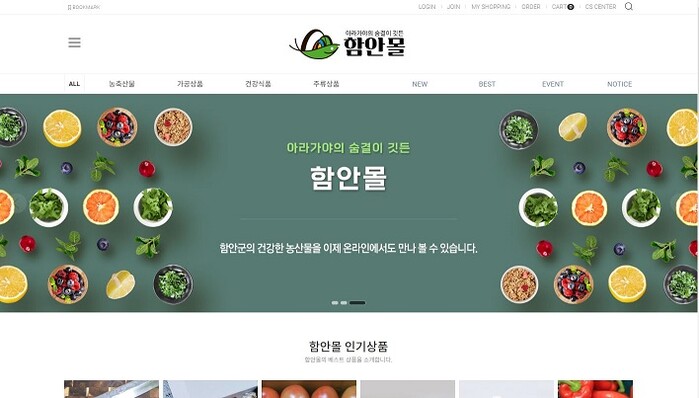 한편, ‘함안몰’은 새로운 소비 트렌드인 온라인 판로 확대를 위해 2021년11월 오픈했으며 함안에서 생산되는 믿을 수 있는 먹거리 제공과 다양한 판촉 활동을 통해 소비자층을 넓혀 가고 있다.