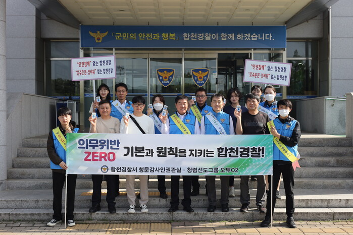 한편, 합천경찰서에서는 이날 캠페인에 앞서 청렴 바람을 일으켜 국민들로부터 신뢰받는 깨끗한 경찰로 거듭날 목적으로, 직원을 대상으로 청렴선도그룹 명칭공모를 통해 ‘오투(오늘도 투명하게, O2(산소)처럼 맑게)’를 선정하였다.