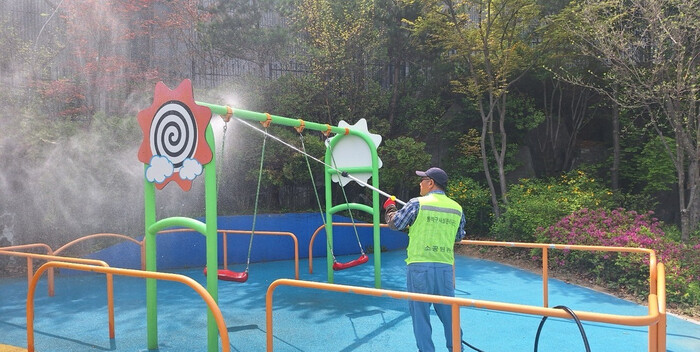 [시민일보 = 여영준 기자] 동작구(구청장 박일하)는 야외활동이 많아지는 봄철을 맞아 아동과 보호자가 안심하고 어린이공원을 이용할 수 있도록 대대적인 물청소를 실시했다고 16일 밝혔다.
