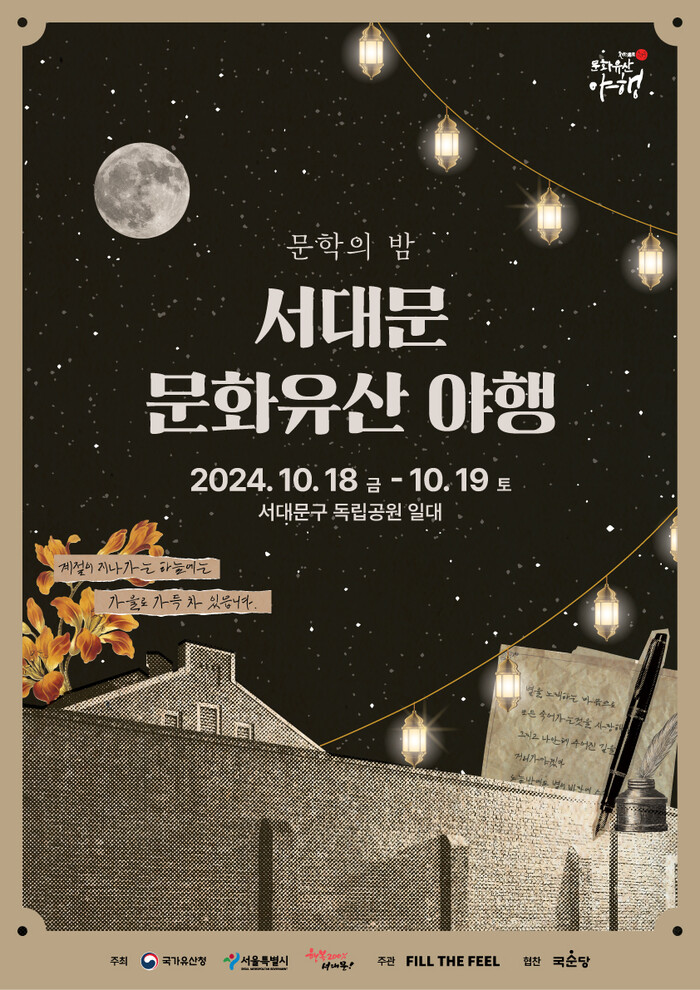 서대문구(구청장 이성헌)는 이달 18일과 19일 서대문독립공원 일대에서 ‘2024 서대문 문화유산 야행’을 개최한다고 밝혔다.