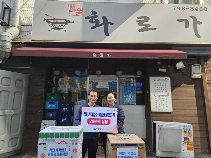 | ▲ 2025 상반기 용산구 착한가격업소 맞춤형 지원 전달. (사진=용산구청 제공) |