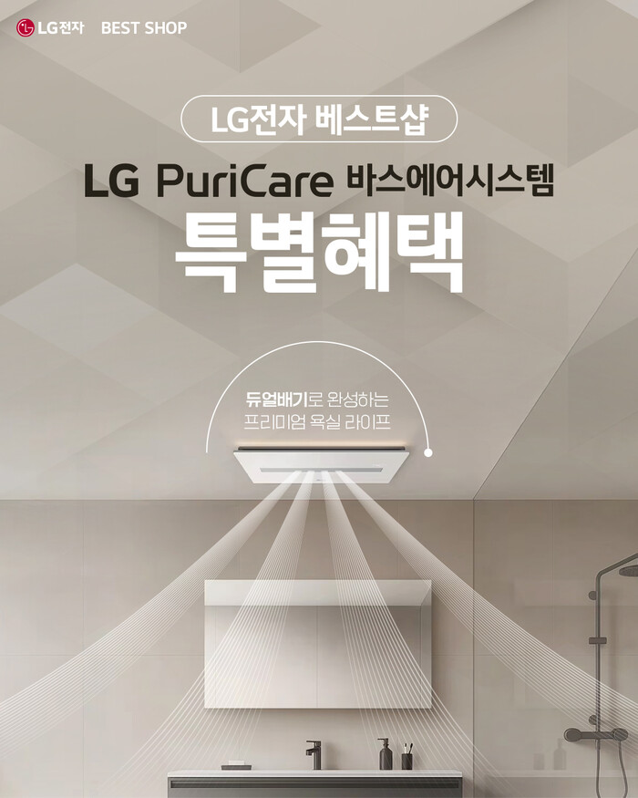 LG전자 베스트샵 관계자는 “욕실 공간의 공기 질 관리에 대한 관심이 높아지면서 바스에어 시스템에 대한 문의도 증가하고 있다”며 “이번 특별혜택전을 통해 고객들이 제품을 직접 체험하고 다양한 혜택으로 만나볼 수 있기를 기대한다”고 전했다.