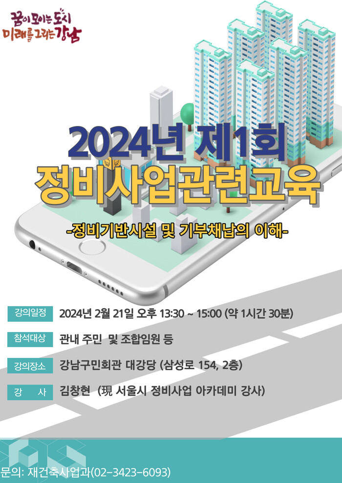 [시민일보 = 이대우 기자] 강남구(구청장 조성명)가 21일 오후 1시30분~3시 강남구민회관 대강당에서 ‘올해 첫 재건축 정비사업 아카데미’를 개최한다.