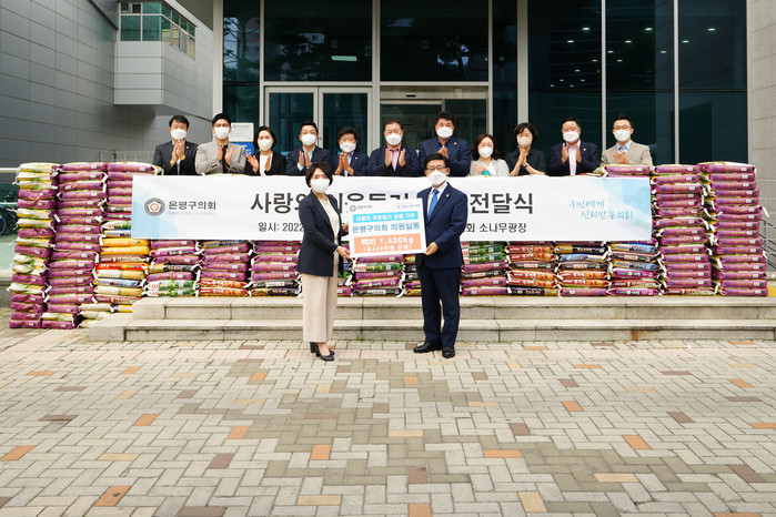 [시민일보 = 이대우 기자] 서울 은평구의회(의장 기노만)가 최근 백미(1420kg, 426만원 상당)를 구청 복지부서로 전달했다.