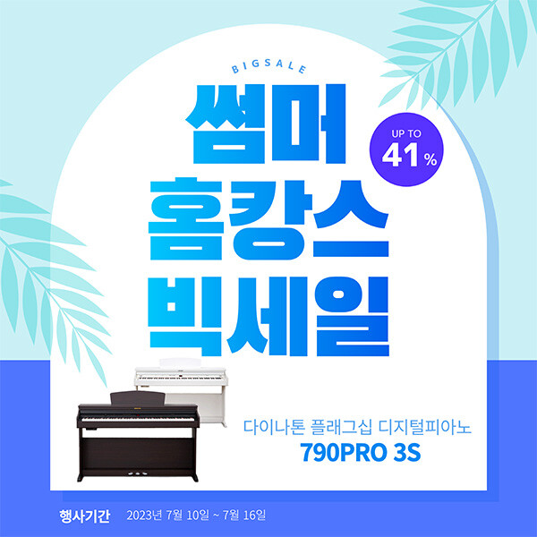국산 디지털피아노 전문브랜드 ㈜다이나톤이 7월 10일부터 ~ 7월 16일까지 다이나톤 공식 스마트스토어에서 얼마전 출시한 신제품 디지털피아노 790PRO 3S의 여름특가 행사를 진행한다.