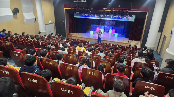 | ▲ 아이들이 어린이 참여형 인형극 ‘알록달록 마법약, 킴브라더스의 대모험‘을 관람하고 있다. (사진=강북구청 제공) |