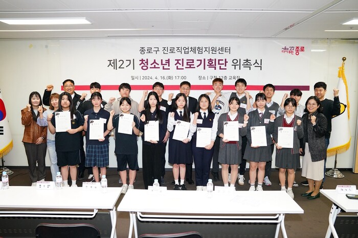 [시민일보 = 이대우 기자] 서울 종로구(구청장 정문헌)가 최근 2기 ‘종로구 청소년 진로기획단’ 위촉식을 가졌다.