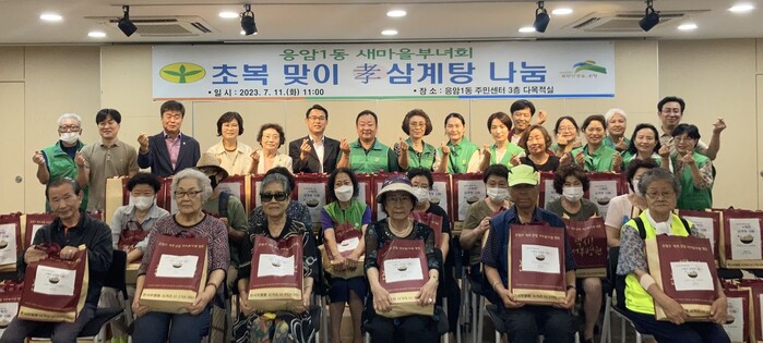 [시민일보 = 이대우 기자] 서울 은평구(구청장 김미경) 응암1동은 최근 새마을부녀회 주관으로 ‘초복맞이 효(孝)삼계탕 나눔 행사’를 진행했다.