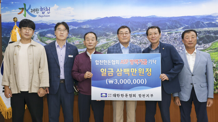 이에 합천한돈협회는 유해야생동물 피해방지단에 방역기금을 전달했으며, 이 기금은 야생멧돼지 포획을 위한 물품 구입에 사용될 예정이다.