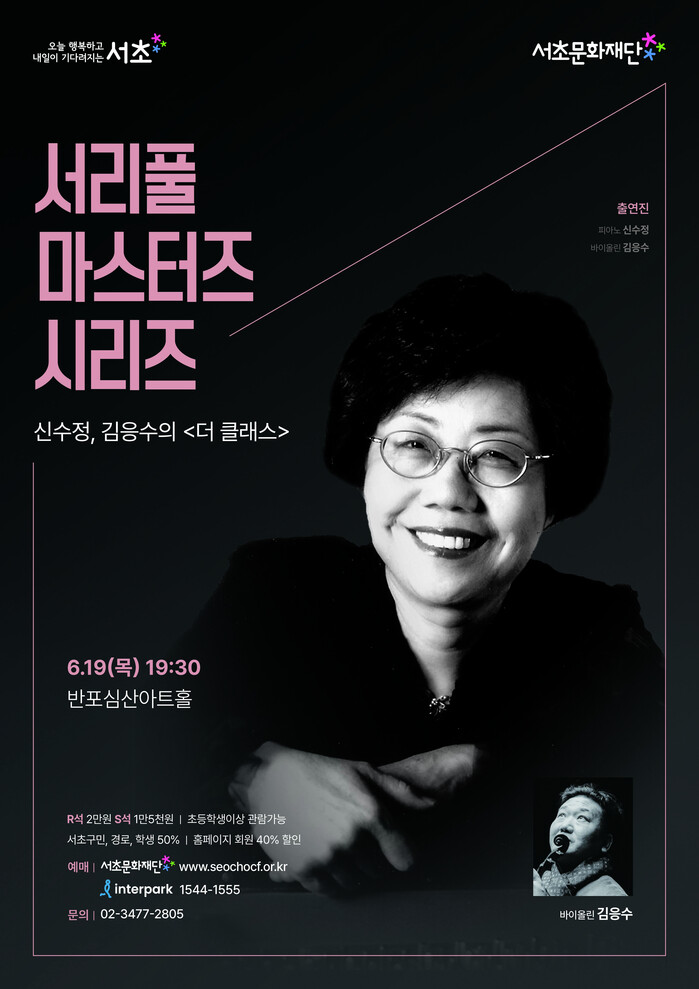 이번 무대는 서초문화재단의 기획 프로그램 ‘서리풀 마스터즈 시리즈’의 일환으로, 클래식 음악계 거장들을 초대해 음악과 삶을 나누는 깊이 있는 시간으로 마련된다. 작년에는 ‘서리풀 거장 초대석’을 통해 바이올리니스트 김민, 작곡가 이영조를 초청해 큰 반향을 얻은 바 있다.