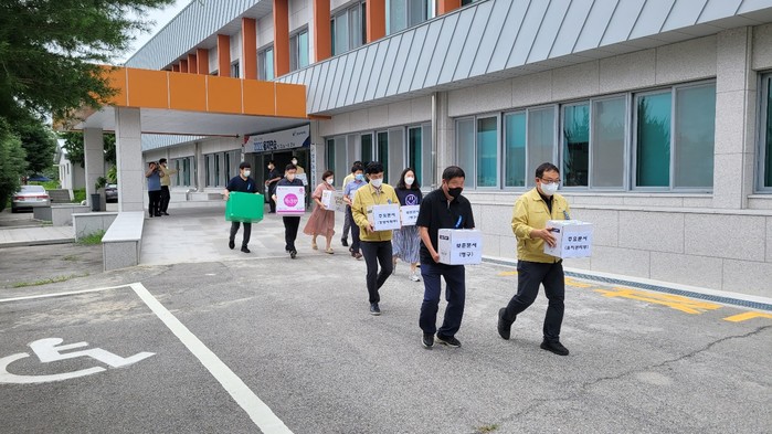 | ▲ 한국농어촌공사 영산강사업단은 지난 23일 전시 상황을 가정하여 전시물자와 인원을 소산·배치하는 실제 소산 훈련을 실시했다.(출처=영산강사업단) |