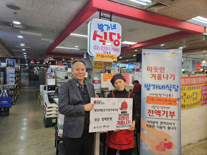 [시민일보 = 박소진 기자] 성동구(구청장 정원오) 행당제2동는 ‘방가네 식당’(행당대림아파트 3층 상가 위치)이 지난 12일부터 14일까지 3일간 식당 운영을 통한 수익금 100만원 전액을 기부했다고 전했다.