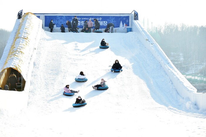 메인인 눈썰매장은 안전을 위해 올해부터 대형 성인용과 소형 어린이용으로 분리해 운영한다. 대형은 총 길이 90m, 10레인, 소형은 길이 45m, 6레인의 슬로프를 갖췄다. 전용 튜브를 이용해 내려가는 방식으로, 별도 대여료 없이 이용 가능하다.