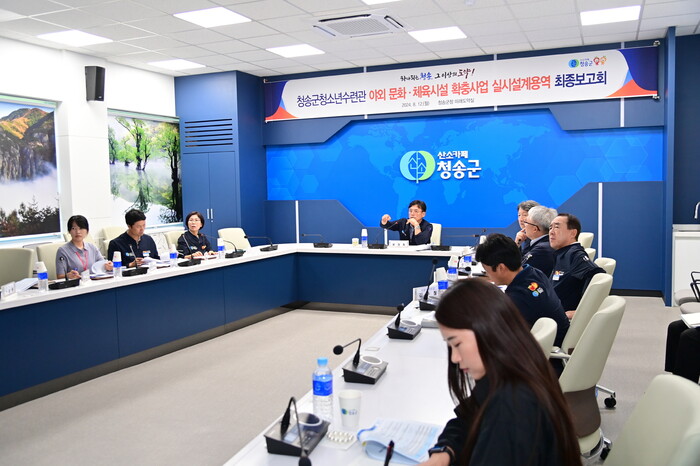 [청송=박병상 기자] 청송군(군수 윤경희)은 지난 12일 군청 미래도약실에서 「청송군청소년수련관 야외 문화체육시설 확충사업 실시설계용역 최종보고회」를 가졌다고 밝혔다.