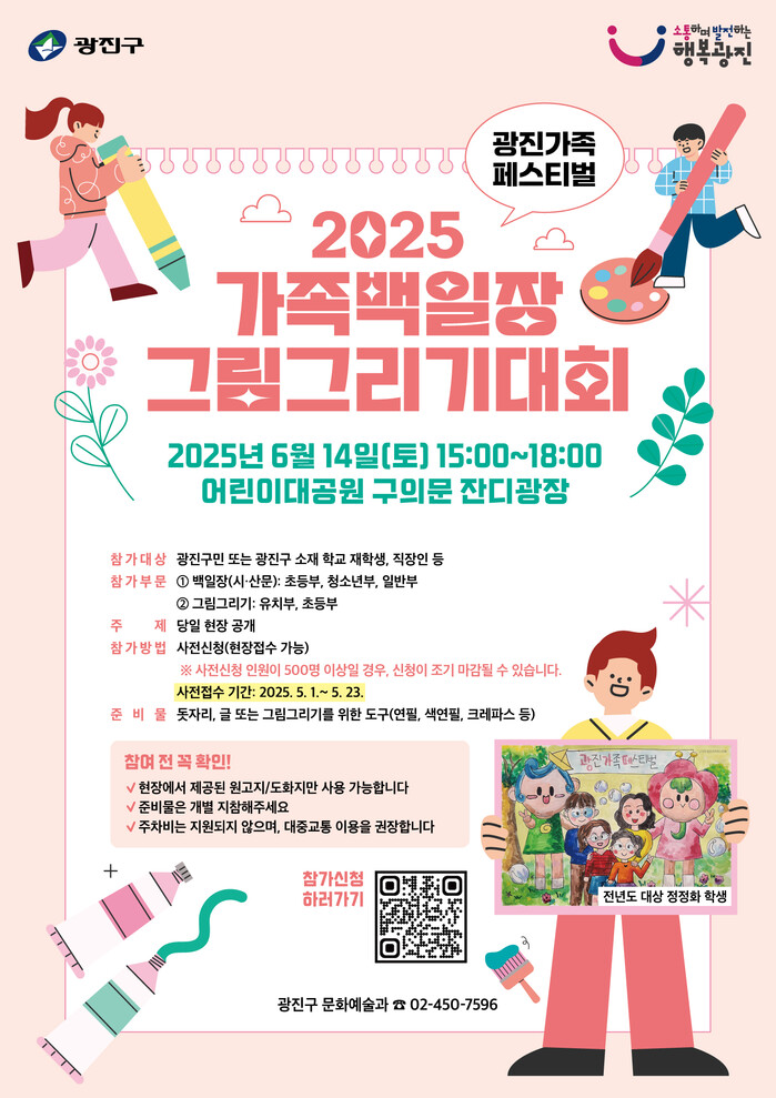 | ▲ 2025년 광진가족페스티벌 가족백일장·그림그리기 대회 홍보 포스터. (사진=광진구청 제공) |