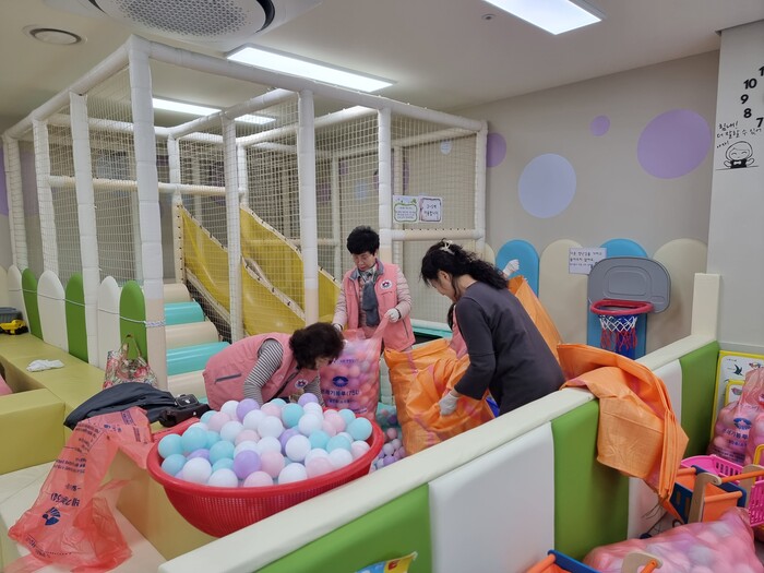 이번 봉사에는 군 여성단체협의회 회원 30여명이 참여했으며, 한마음꿈터(장난감도서관) 이용 아동들을 위한 편백나무 및 볼풀 등 장난감 소독 봉사활동을 진행했다.