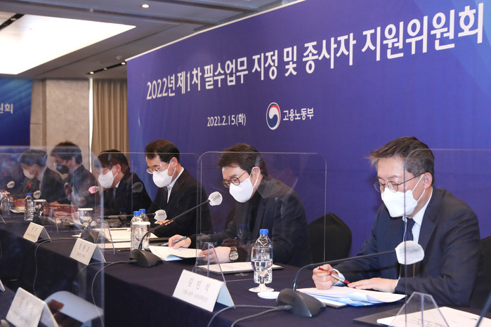 정원오 서울 성동구청장이 최근 ‘제1차 필수업무 지정 및 종사자 지원위원회’에 참석했다. 이날 정 구청장은 필수노동자들에게도 언제든지 PCR 검사가 가능해야 한다는 점을 강조하고 필수노동자의 권익 향상에 적극 나섰다. 사진은 이날 2022년 제1차 필수업무 지정 및 종사자 지원위원회에 참석한 정 구청장(오른쪽 두 번째)의 모습. (사진제공=성동구청)