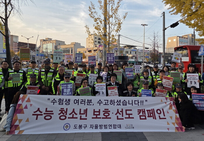 이번 캠페인은 수험생·청소년의 안전한 귀가와 일탈 예방을 위해 기획됐으며, 캠페인에는 도봉구 자율방범연합대, 동 자율방범대원, 주민 등 50여 명이 참여했다.