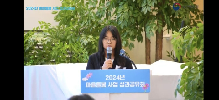 | ▲ 지난 1일 2024년 마을돌봄 사업 성과공유회에서 차영경 학생이 발표하고 있다. (사진=용산구청 제공) |