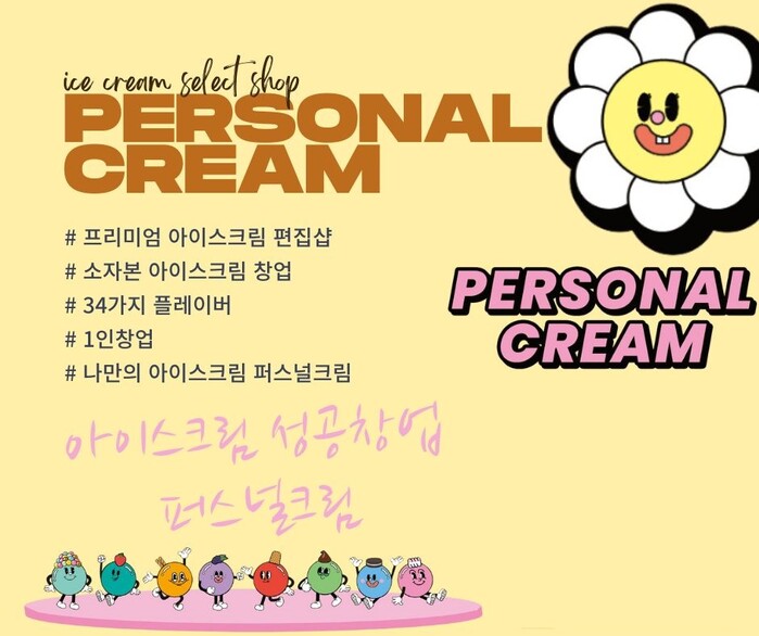 아이스크림 편집샵 퍼스널크림 브랜드는 10종의 벌크형 떠먹는 아이스크림과 구슬아이스크림 24종의 자체적인 레시피로 국내 아이스크림 프랜차이즈 시장에서 입지를 다지고 있다.