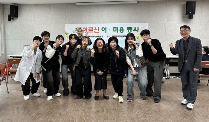 김문자 대조동장은 “최은정 교수님을 비롯한 학생들의 재능 나눔 활동에 깊은 감사를 드린다”며 “따뜻한 봄날 어르ㄴ신들이 미용 서비스를 받아 행복한 시간이 됐길 바라며 이러한 봉사활동이 우리 사회를 더욱 따뜻하게 채워줄 것이라고 기대해본다”고 밝혔다.