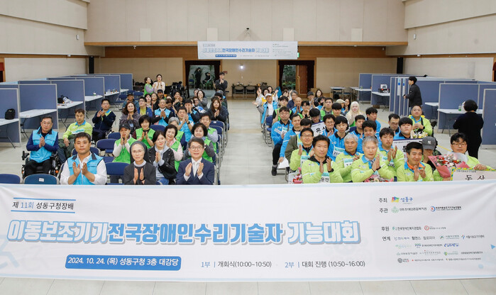 [시민일보 = 박소진 기자] 성동구(구청장 정원오)는 오는 31일 오전 10시 성동구청 3층 대강당에서 ‘제12회 성동구청장배 이동보조기기 전국장애인수리기술자 기능대회’를 개최한다고 밝혔다.