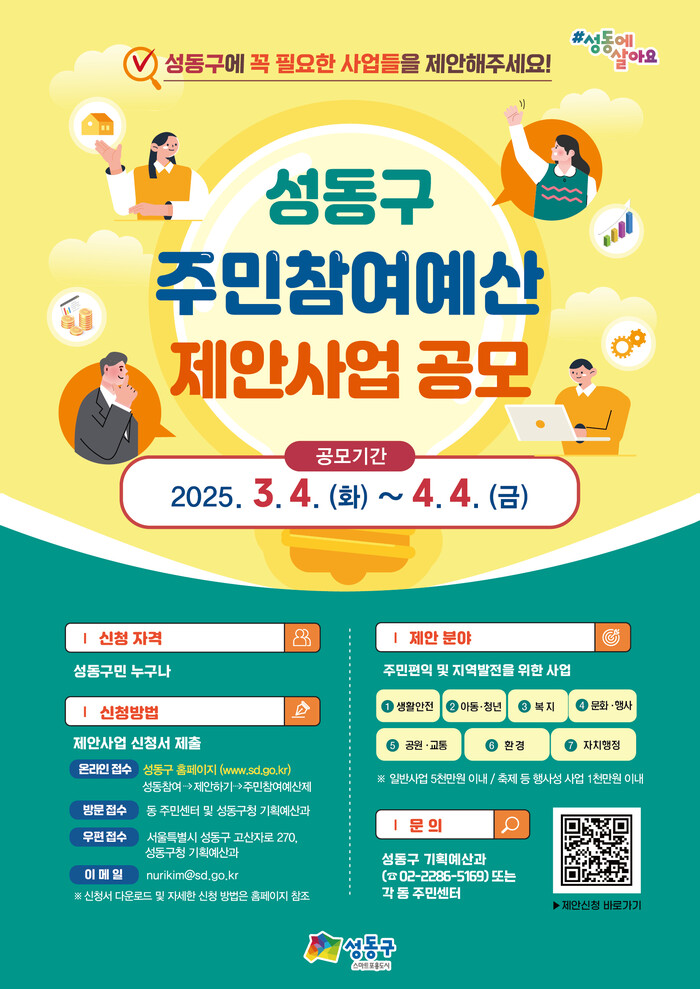 | ▲ 성동구 주민참여예산 제안사업 공모 포스터. (사진=성동구청 제공) |