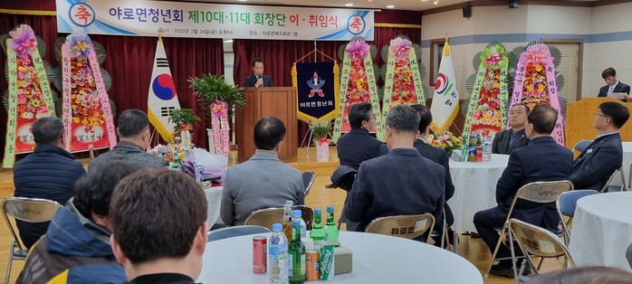 [합천=이영수 기자] 합천군 야로면청년회(회장 정수덕)는 지난 24일 야로면 복지회관에서 제10대·11대회장 이·취임식을 가졌다.