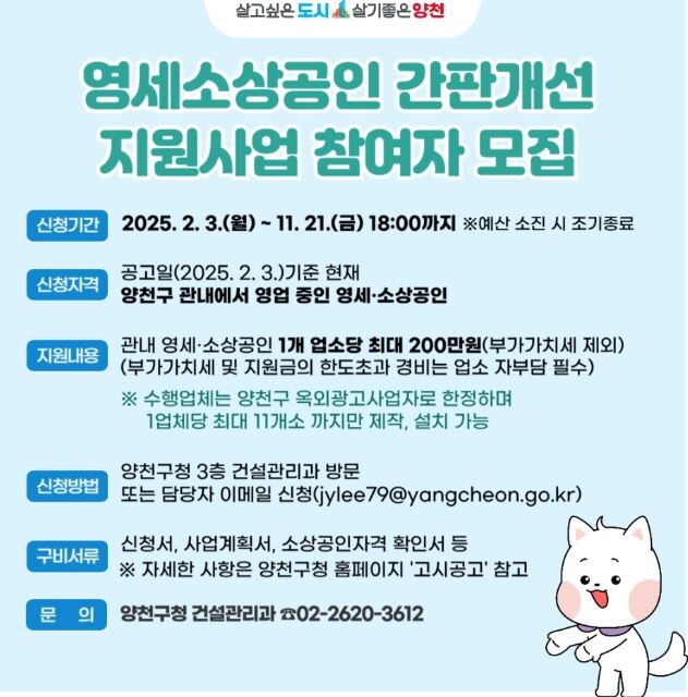 | ▲ 양천구 2025년 영세·소상공인 간판개선지원사업 안내 이미지. (사진=양천구청 제공) |