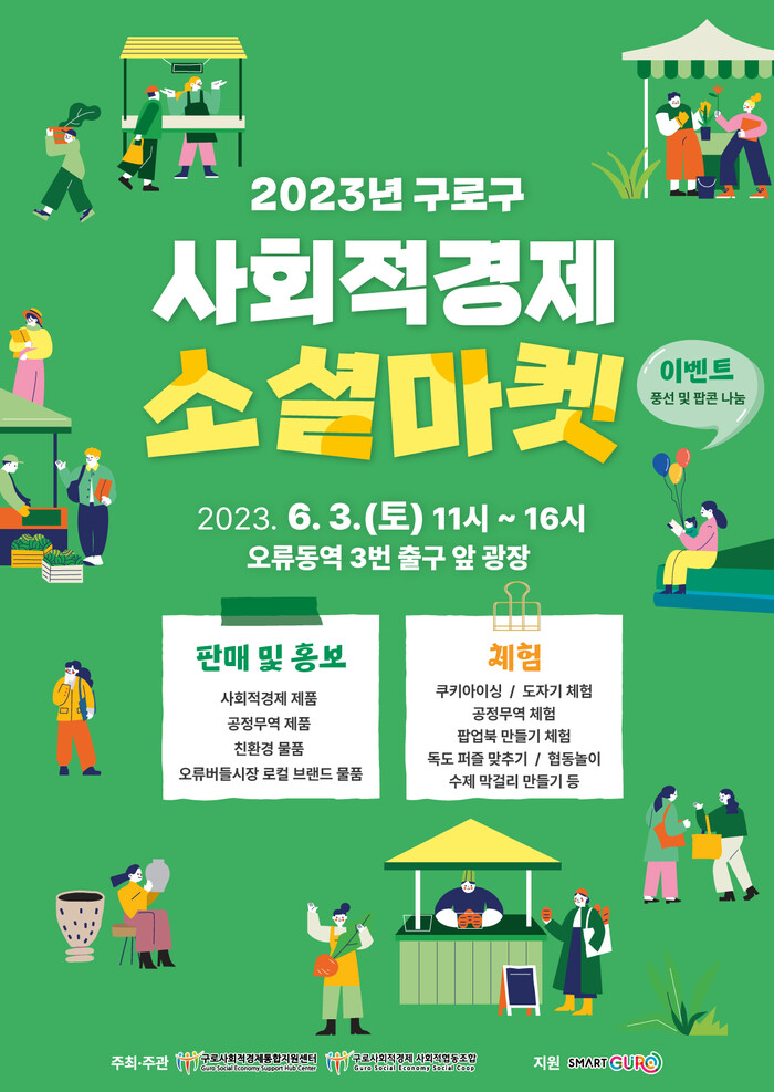 이번 소셜마켓은 구로사회적경제통합지원센터와 구로사회적경제 사회적협동조합이 공동으로 주최하는 것으로, 사회적경제 조직 간 교류와 화합의 기회를 제공하고 사회적경제에 대한 주민의 이해도와 관심을 높이고자 매년 개최돼왔다.