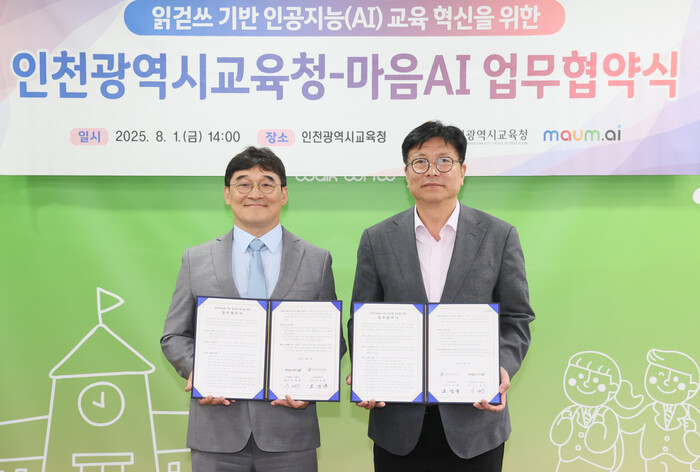 [인천=문찬식 기자] 인천광역시교육청(교육감 도성훈)은 지난 1일 인공지능(AI) 전문기업 마음AI(maum.ai)와 ‘읽걷쓰’ 기반 AI 교육 활성화를 위한 업무협약을 체결했다고 밝혔다.