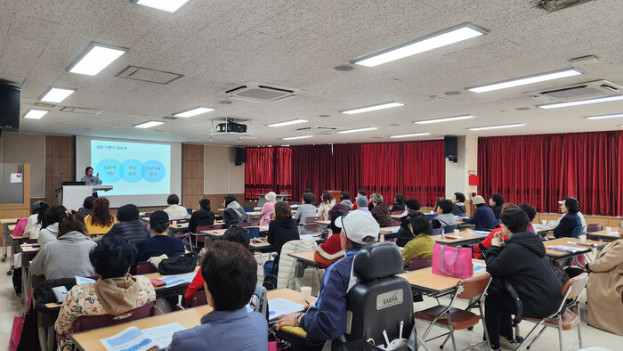 | ▲ 도봉구 지역내 동 생명지킴이 활동가 등이 역량강화 교육을 듣고 있다. (사진=도봉구청 제공) |