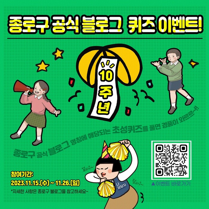 [시민일보 = 이대우 기자] 종로구(구청장 정문헌) 공식 블로그 ‘종로통’ 개설 10주년 기념 이벤트가 오는 26일까지 개최된다.