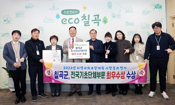 [칠곡=박병상 기자] 칠곡군은 보건복지부에서 실시한 2023년 지역사회보장계획 시행결과 평가에서 전국기초자치단체 부문 최우수기관으로 선정됐다.군은 2013년부터 2023년까지 우수에 이은 7번째 수상 성과이다.
