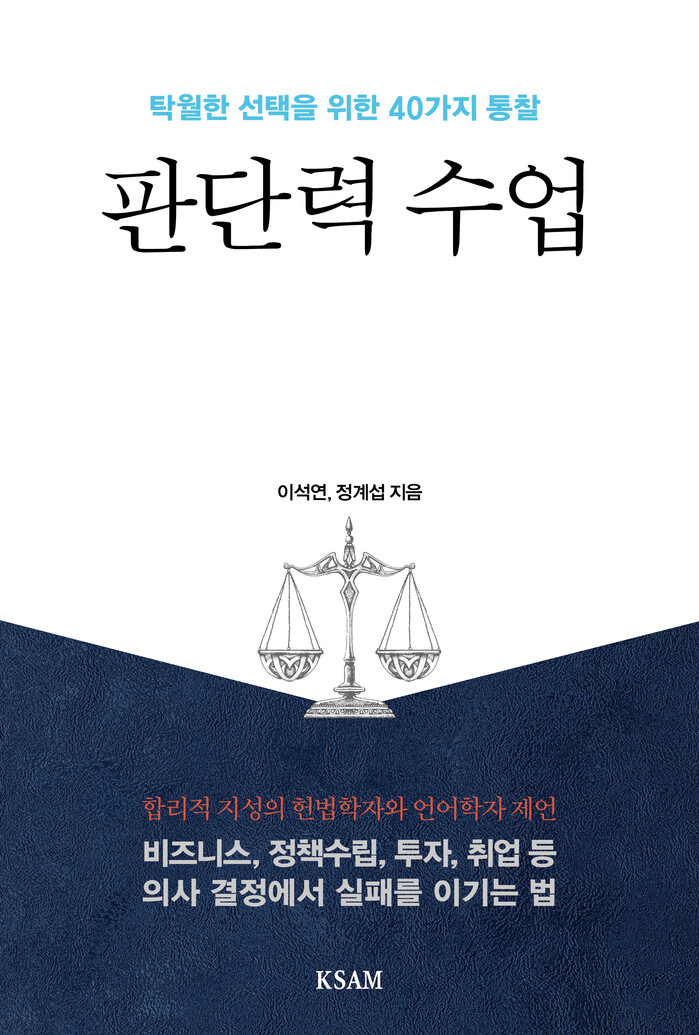‘판단력 수업’에는 행동경제학을 토대로 기존에 출판된 수많은 관련 저술들을 한 단계 더 높게 비판적으로 검토한 결과물이 담겼다. 특히, 경제 행위에서 잘못된 선택을 다루는 행동경제학의 취지에는 공감하면서도, 언어학자와 헌법학자인 저자들의 입장에서 행동경제학을 넘어 논의를 인지적 오류 전반에 걸쳐 확장하며 우리 사회에 만연하는 병폐도 진단하였다.