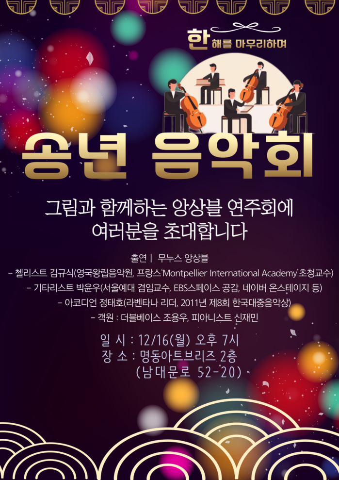 | ▲ 명동아트브리즈 송년음악회 개최 포스터. (사진=중구청 제공) |