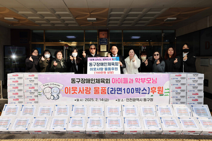[인천=문찬식 기자] 인천 동구(구청장 김찬진)는 동구장애인체육회가 지난 14일 관내 저소득 취약계층을 위해 125만원 상당의 후원물품을 기탁했다고 밝혔다.