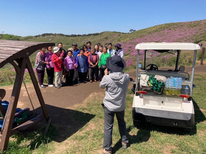 나눔카트 투어 프로그램을 개발한 담당자는 “철쭉 개화기간에는 노모를 모시고 오는 가족들이 많지만 항상 차량이 올라갈 수 있는 자리에서 먼발치에서 관람하고 가는 모습이 안타까워 전동카트 체험 프로그램을 개발했다”며 프로그램 개발의 따뜻한 마음을 드러냈다.