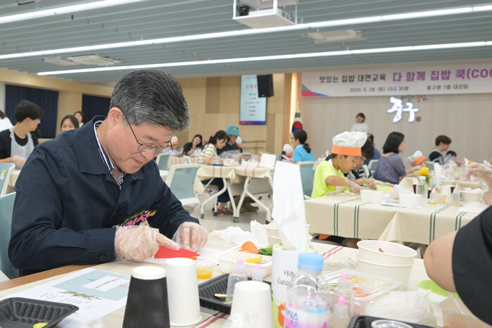 [시민일보 = 여영준 기자] 서울 중구(구청장 김길성)는 지난 28일 중구청 7층 ‘중구홀’에서 온 가족이 함께 요리하며 건강한 식생활을 체험할 수 있는‘다 함께 집밥 쿡!’ 조리체험 교실을 성황리에 개최했다.