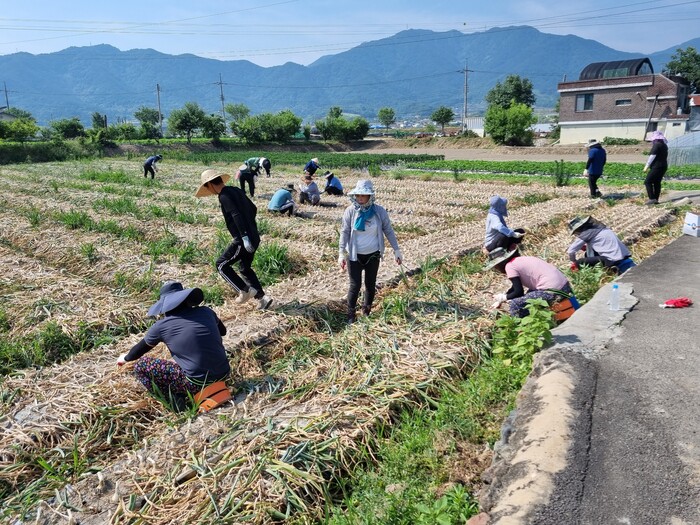 이날 일손돕기에는 20여명의 직원이 참여했으며 한낮 기온이 30도가 넘는 무더운 날씨에도 불구하고 일손 부족으로 어려움을 겪는 농가를 위해 양파를 수확하며 구슬땀을 흘렸다.