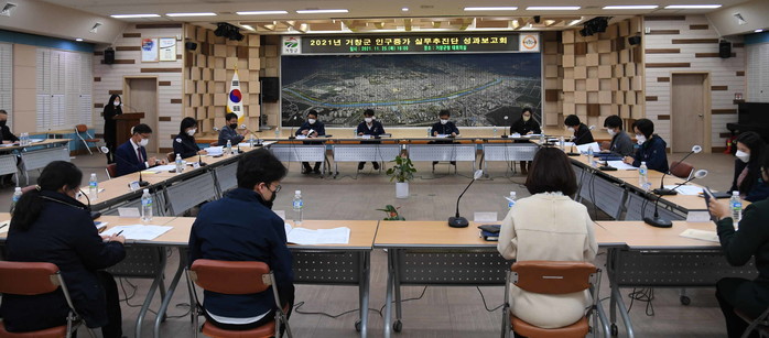 | ▲ '2021년 인구증가 실무추진단 성과보고회' 진행 모습. (사진제공=거창군청) |