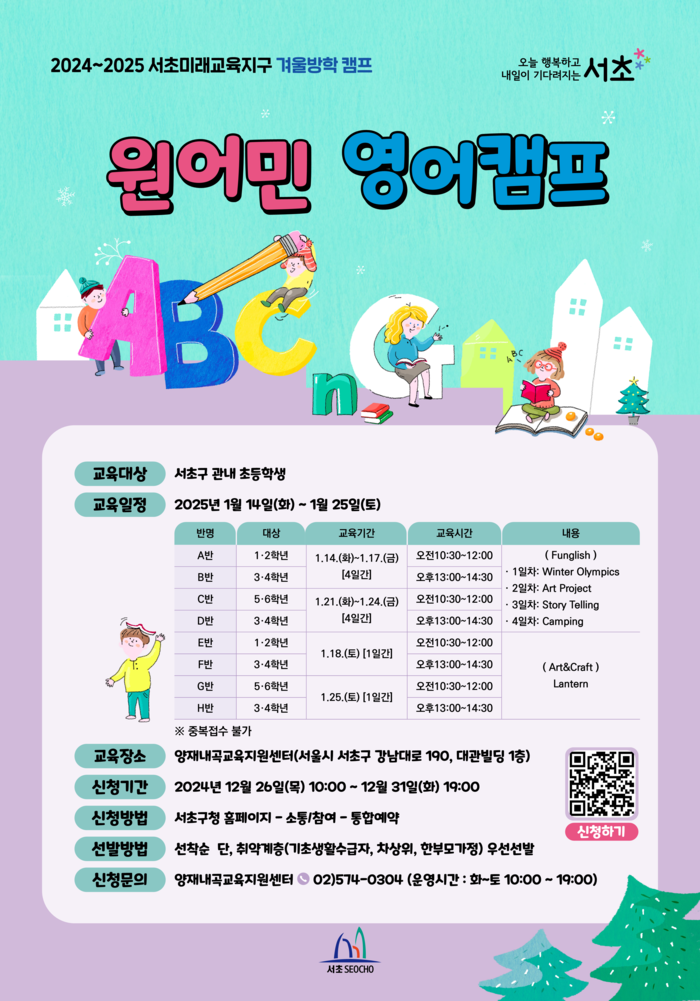 | ▲ 원어민 영어캠프 포스터. (사진=서초구청 제공) |