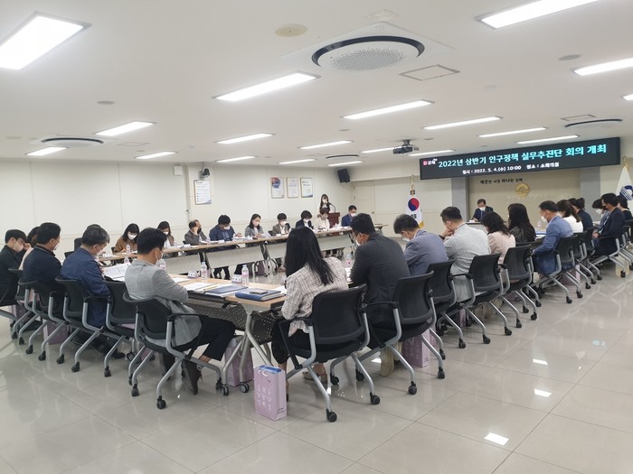 인구정책 실무추진단은 조재훈 기획조정실장을 단장으로 인구정책 추진 관련 19개 부서 담당팀장 32명으로 구성해 지난해 3월 발대식을 시작으로 저출산과 인구 유출로 가속화되는 인구감소 위기를 해결하고자 부서 간 협업으로 종합적인 대응방안 마련에 힘쓰고 있다.